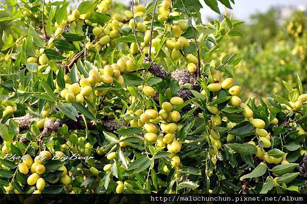 園區內還有一種較大粒的棗子 咬起來口感較鬆 較不甜 那是做紅棗乾的