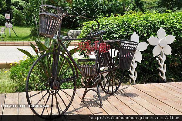 這台古式腳踏車 被裝飾得很有古意 你看 他的影子很美麗