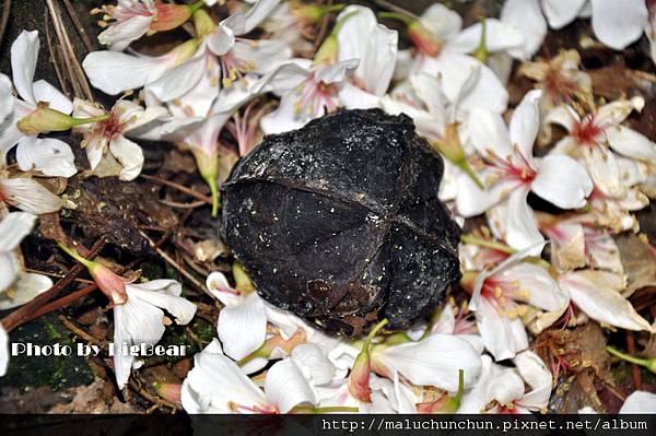果實在樹上呈現淡綠色 顏色漸漸轉深 掉在地上變深咖啡色至黑色