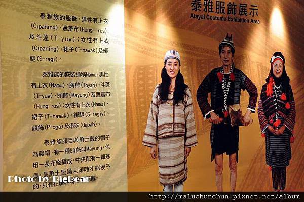 在一樓服務櫃台旁 新設立泰雅服飾體驗區 讓遊客穿戴泰雅服飾拍照 頗受好評