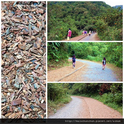 步道入口一小段 設有木屑道~ 厚實的木屑 軟軟的有彈性的 讓腳底很舒服