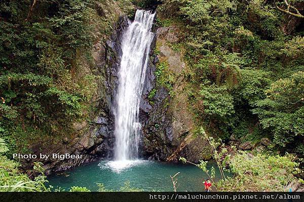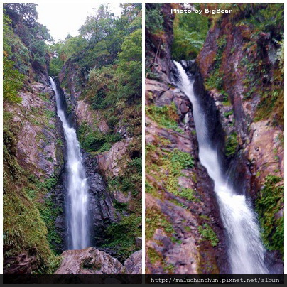 這溪水流經斷層 從30公尺高的崖頂墜落 傾洩沖刷深潭