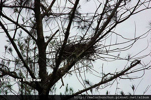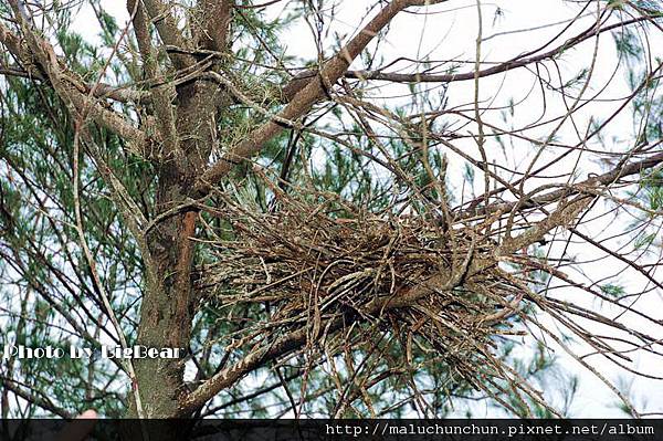 樹上很多枯枝搭成鳥巢 現在是小鳥孵育期 所以鳥巢裡有很多蛋蛋