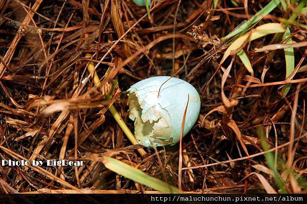 上次我去能高越嶺拍雛鳥時 有一窩已經孵出來 我們把遮掩的草暫時撥開拍照