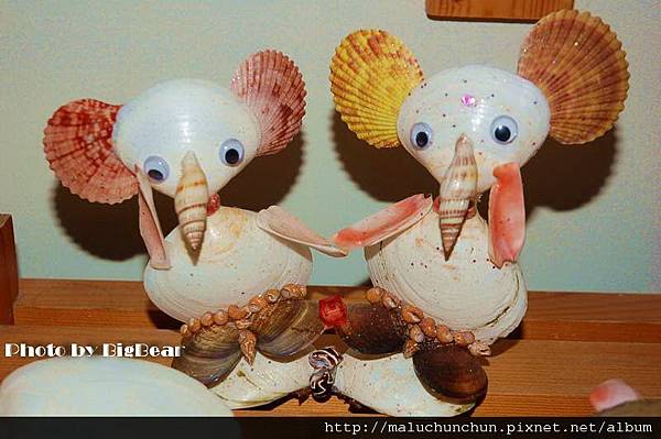以馬蹄蛤外殼為素材 做燈具 風鈴 貼畫 甚至當作畫的背景材料 十分有意思