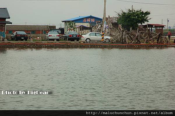 坐在遊覽車內 遠遠就看到一片漁塭中的藍色建築