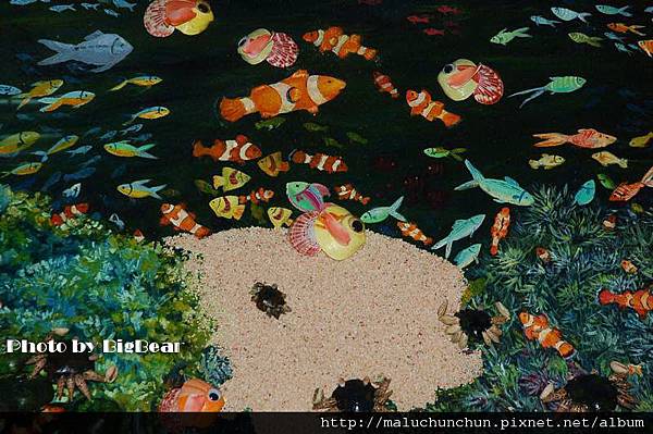 這是廁所 牆上一樣有馬蹄蛤的殼做的造景 當然也得來一張