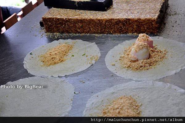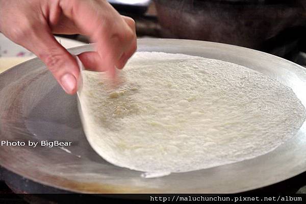 現場自製春捲皮 常讓沒看過春捲皮製作過程的遊客 相機咔嚓個不停
