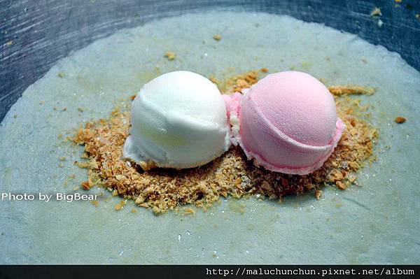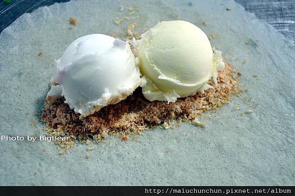 放上香菜 再刨層花生粉 捲起來 就成為春捲冰淇淋了