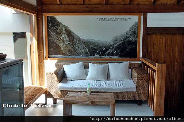 大廳右側有個小憩區 背景的圖片 便是附近的石門古戰場