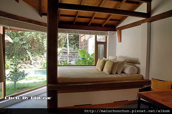 池畔談心榻 很有峇里島渡假休閒風 夜間可當床使用