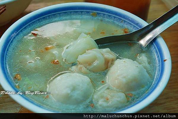 沒關係 救星來了 魚丸餛飩湯出場 大顆的魚丸肉 一咬湯汁噴射滿嘴 真是好啊