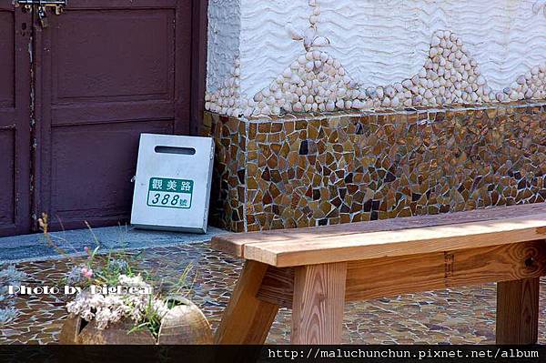 運用沿海特產的貝殼黏貼 將牆面弄的很有海味