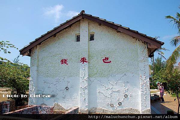 這座以蚵殼改建的屋子 大辣辣的寫著錢來也