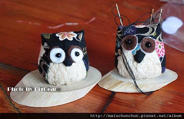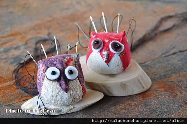 做好的貓頭鷹 黏在乾燥上的構樹上 就是完美的針插