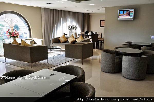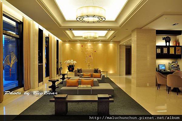 當您辦理入住手續時 親友可在櫃枱旁的大廳等候 大隻熊超愛大廳的長椅哦