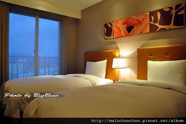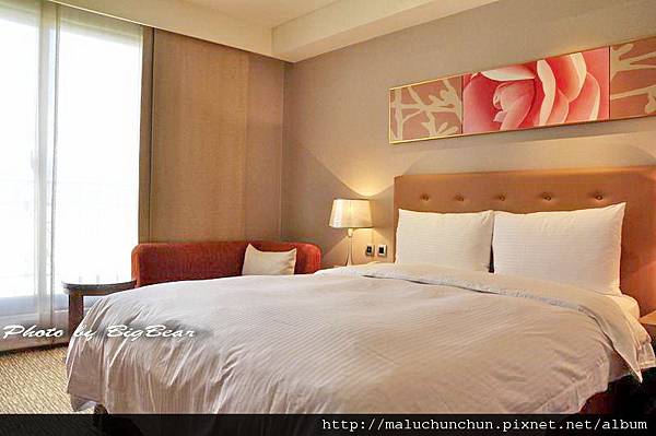 一大床的房型 因為位在邊間 除了採光好 房也較大 坪數有9-9。5坪